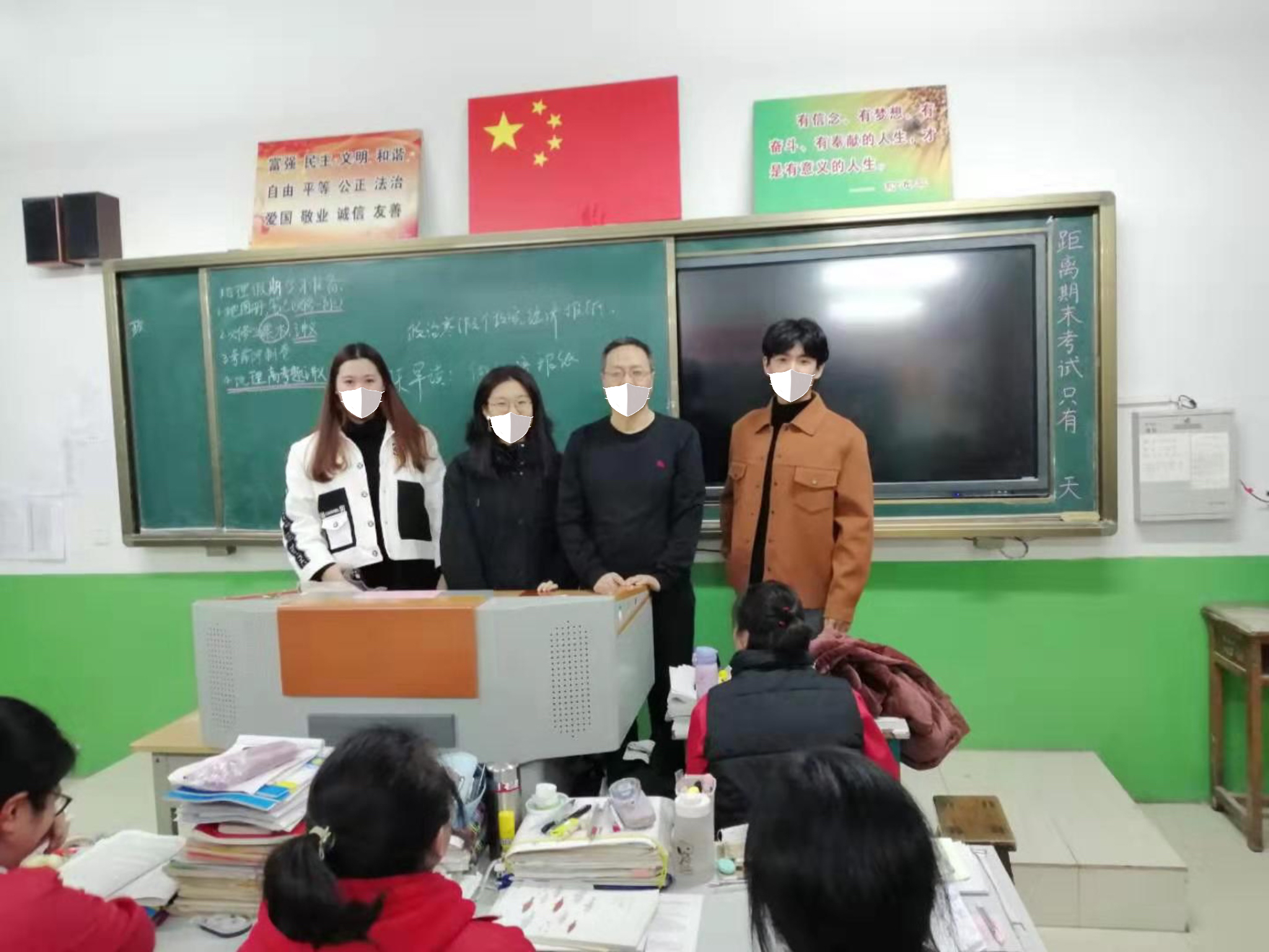 滕昊朋同学(左一)在家乡所在地高中普及环保知识