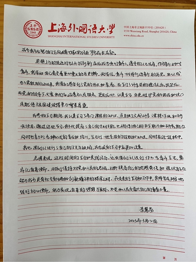 结合“四个一”寒假红色主题系列活动和寒假期间的所思所想所感所悟,各党支部和团支部组织党员和积极追求入党的同学认真撰写了思想汇报,回顾了自己的成长与收获,提升了自己的思想觉悟,以不断向党组织靠拢。