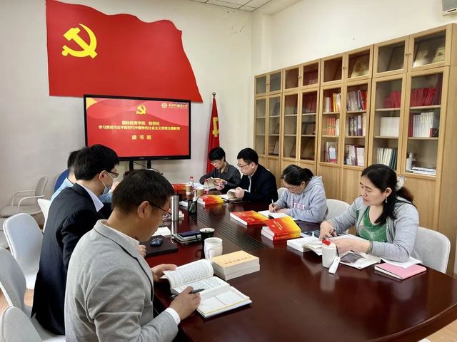 5月8日下午,国际教育学院举办学习贯彻习近平新时代中国特色社会主义思想主题教育读书班,本次读书班由国际教育学院和教务处联学,主题是《以新思想为引领,推动教育高质量发展》,由国际教育学院院长、教务处处长金慧领学,国教学院党政班子成员、教务处班子成员参加。