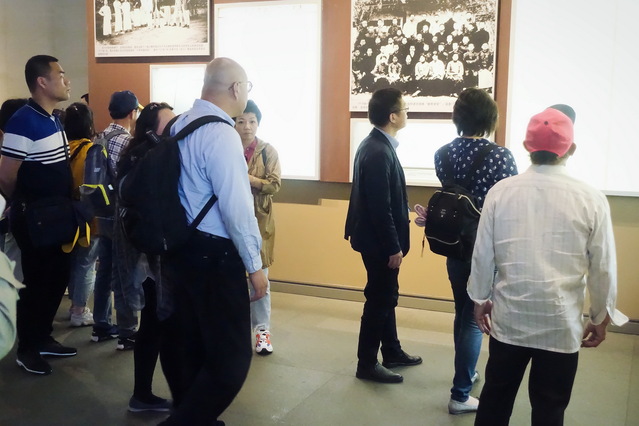 纪念馆共分三层,一楼讲述了自晚清至中国共产党诞生之前那段风雨飘摇的历史,二楼则通过旧物、模型等将中国共产党的成立进程娓娓道来,三楼生动再现了中国共产党领导下如火如荼开展新民主主义革命和建设中国特色社会主义国家的奋斗历程。走过巨型雕塑和版画时,师生们痛惜积贫积弱、受尽屈辱的近代中国,也为国人民族危亡意识的觉醒感到振奋;站在档案文物陈列柜前,师生们深刻体会到革命历程的艰难曲折、惊心动魄,更加敬佩革命先驱筚路蓝缕的勇气与魄力;观看影像资料时,大家为新中国在改革开放中取得的重大成就感到骄傲自豪,对祖国未来的繁荣发展充满信心和信念。通过参观,大家不仅了解到了历史进程中的史实细节,还体会到中国共产党领导全国人民建设新中国的艰辛与笃定。最后,师生党员在宣誓墙下合影留念,表达自己在祖国建设中不忘初心、牢记使命、担当尽责、无私奉献的决心。