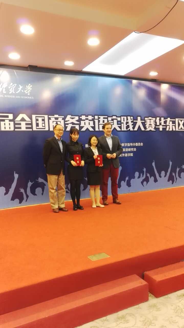 2015年11月6日,我校商务英语专业代表队参加了第三届全国商务英语实践大赛,荣获华东赛区二等奖,队长洪舒宁同学荣获最具风采奖。获奖的喜悦为即将到来的冬季带来一股暖流,更为我校商务英语专业增光添彩。